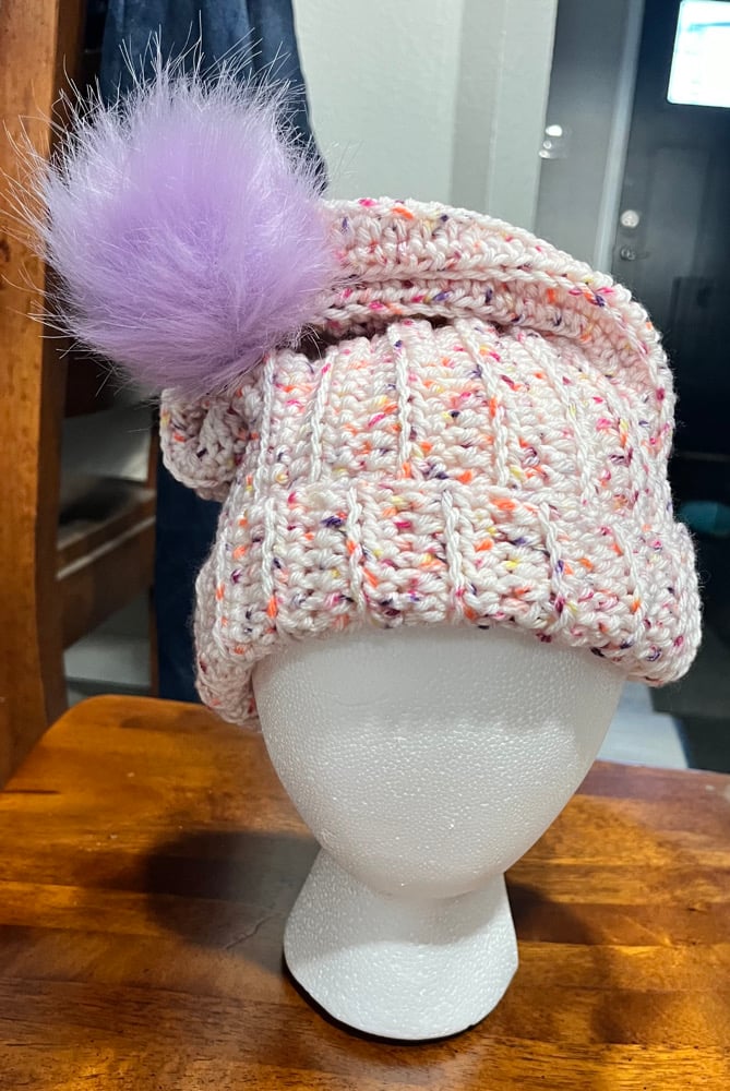 Crocheted ribbed beanie are snug, stretchy hats featuring a textured ribbed pattern created by alternating stitches. This beanie offers a cozy fit and stylish look, perfect for keeping warm in cooler weather. Versatile and comfortable. this beanie makes a great handmade gift or wardrobe staple.