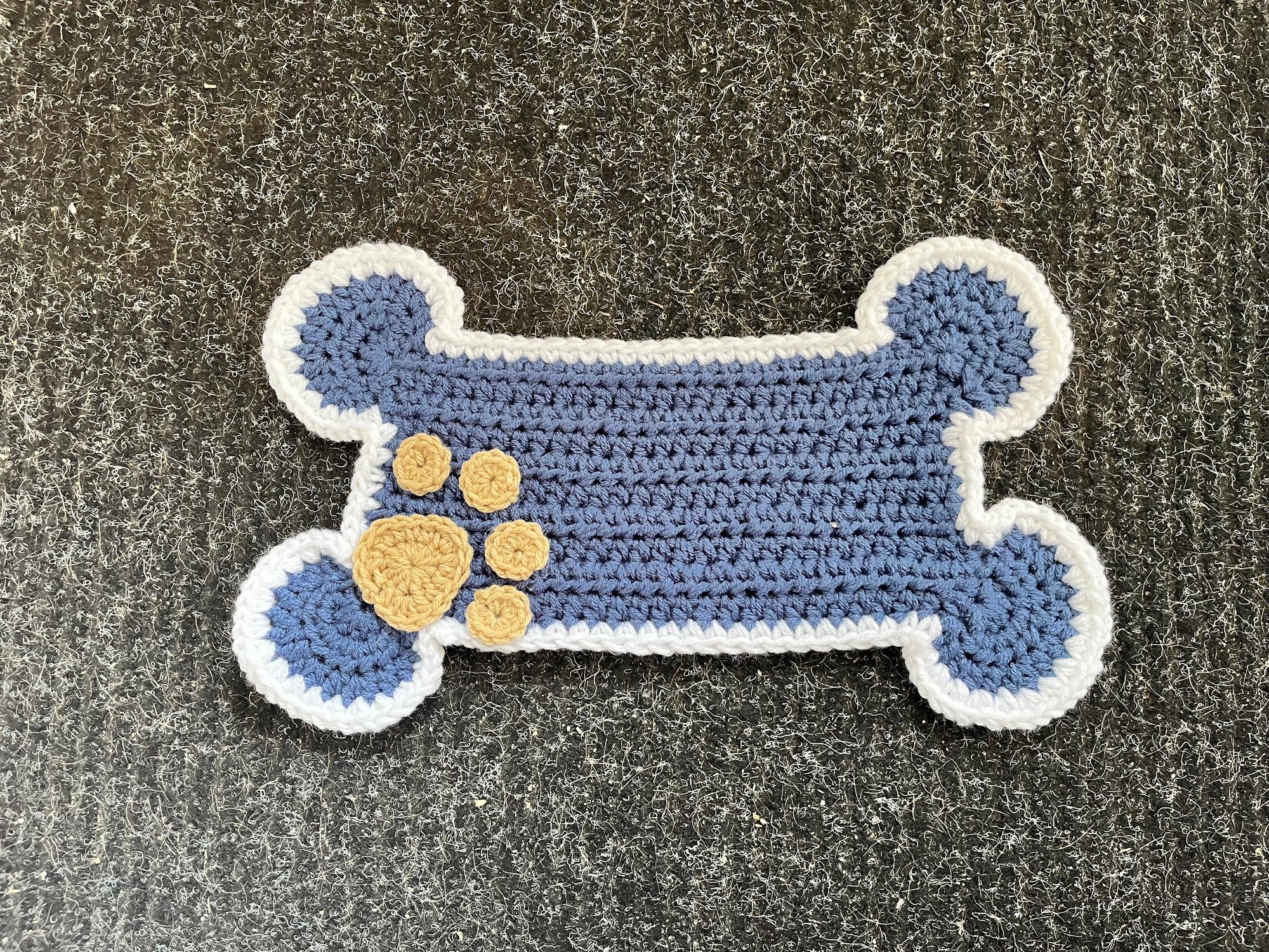 A dog food mat is a handmade mat placed under your dog's food and water bowls to catch spills and keep feeding areas clean. Made with durable yarn, it combines functionality with a cute, cozy design that's easy to wash and reuse. Great for pet lovers who enjoy crafty, personalized touches!
