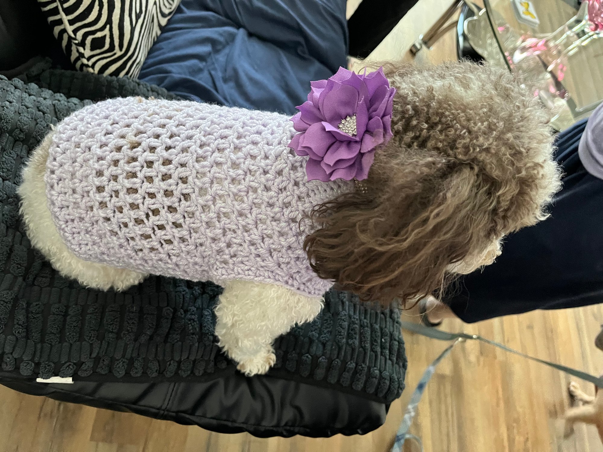 *Sophie (toy poodle) is modeling a small sweater.