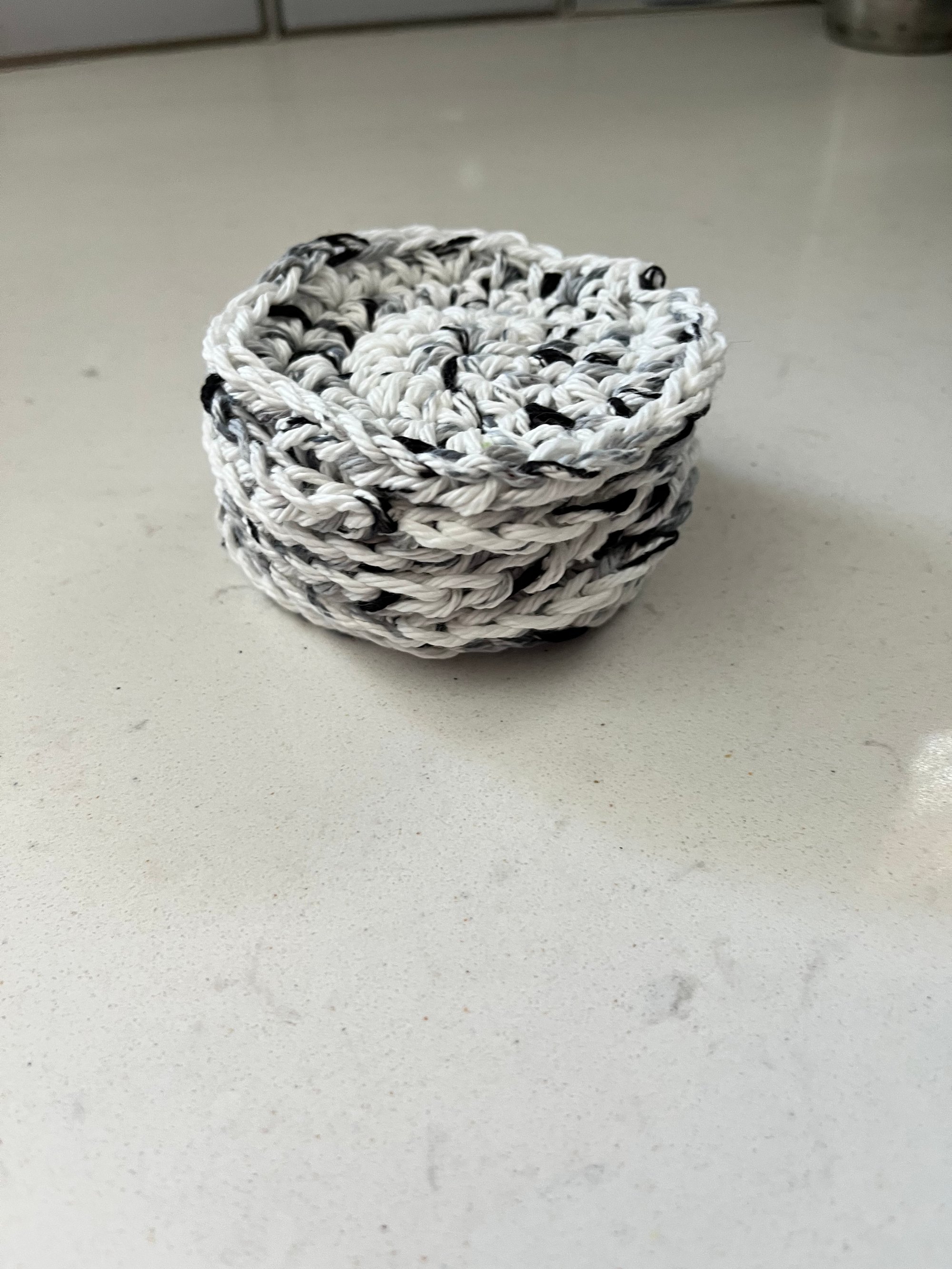 Crocheted face srubbies are reusable, eco-friendly alternatives to disposable cotton pads. Made with soft, absorbent yarn-cotton yarn-they gently cleanse and exfoliate the skin. Perfect for daily skincare routines, these handmade scrubbies are washable, durable, and ideal for makeup removal or applying toner.
