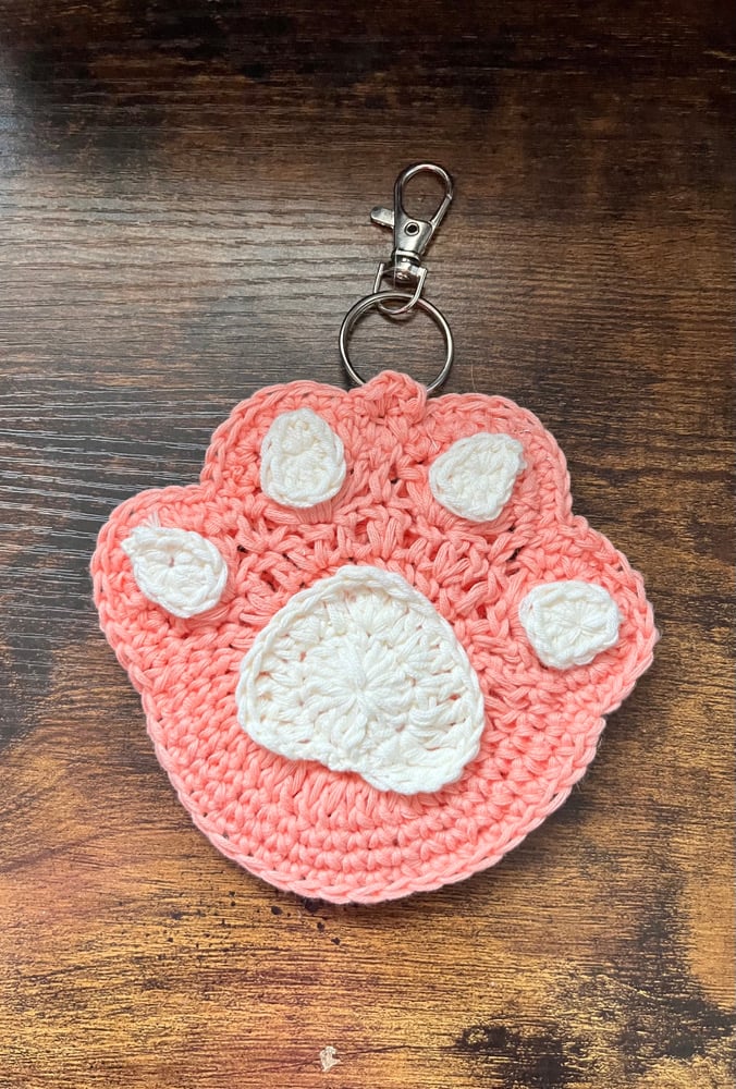 Carry a little piece of puppy (or kitty!) love wherever you go 🐾 This handmade crocheted paw print keychain is crafted from soft, durable 100% cotton yarn, making it lightweight yet sturdy for everyday use.
