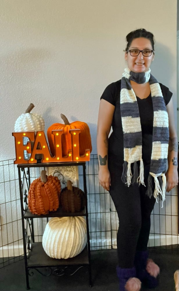 Perfect for chilly days, this scarf is both warm and lightweight — ideal for layering through fall and winter. Whether you’re dressing up a casual outfit or gifting a handmade treasure to someone special, this striped scarf brings warmth, texture, and handmade love to every wear.