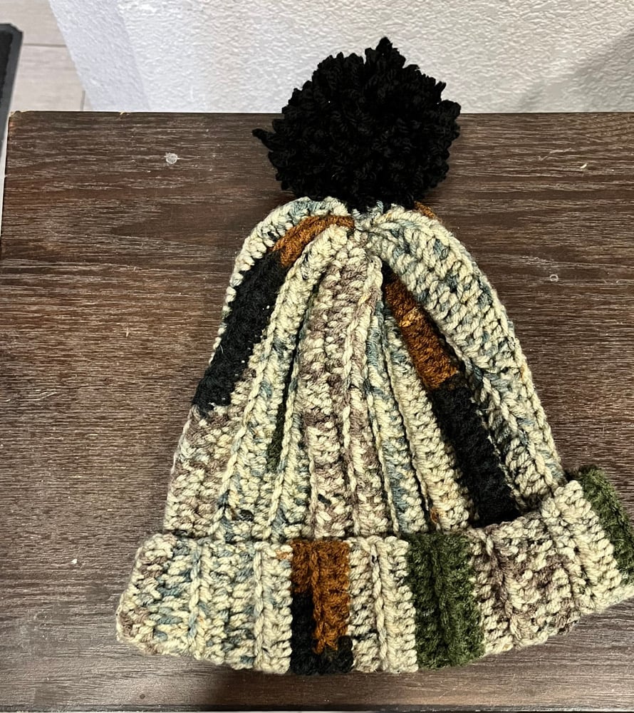 Crocheted ribbed beanie are snug, stretchy hats featuring a textured ribbed pattern created by alternating stitches. This beanie offers a cozy fit and stylish look, perfect for keeping warm in cooler weather. Versatile and comfortable. this beanie makes a great handmade gift or wardrobe staple.