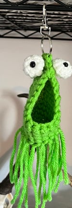 Bring a little extraterrestrial joy wherever you go with these adorable Yip Yip Keychains! Inspired by the quirky alien creatures from Sesame Street. Made with osft, high-quality yarn and a sturdy keyring attachment, they're perfect for backpacks, purses, keys, or gifting to fellow nostalgia lovers.